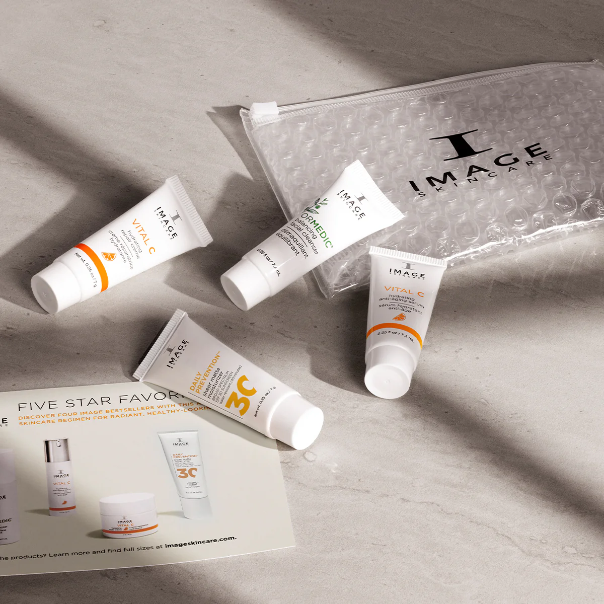 A skincare sample set featuring our top-rated products in an easy-to-use regimen for morning and night